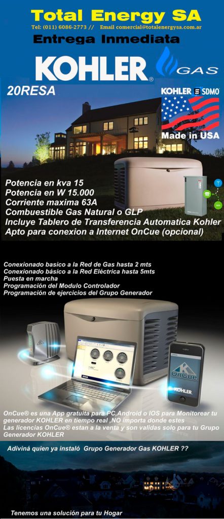 Los grupos electrógenos a Gas Kohler tienen una alta compatibilidad para funcionar con la red de gas domiciliaria o GLP. Gracias a la estandarización de su producción, podemos ofrecer eficientes Grupos Electrógenos a gas al mejor precio del mercado.